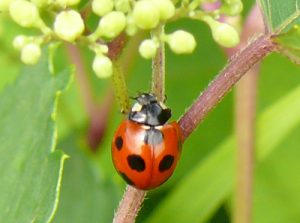 ほぼ日本全土に見られ、成虫、幼虫ともにアブラムシを食べます。