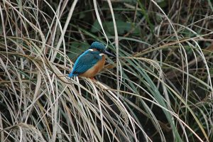 水辺の枝や石の上に止まり、水中にダイビングして小魚ななどを捕食しています。
